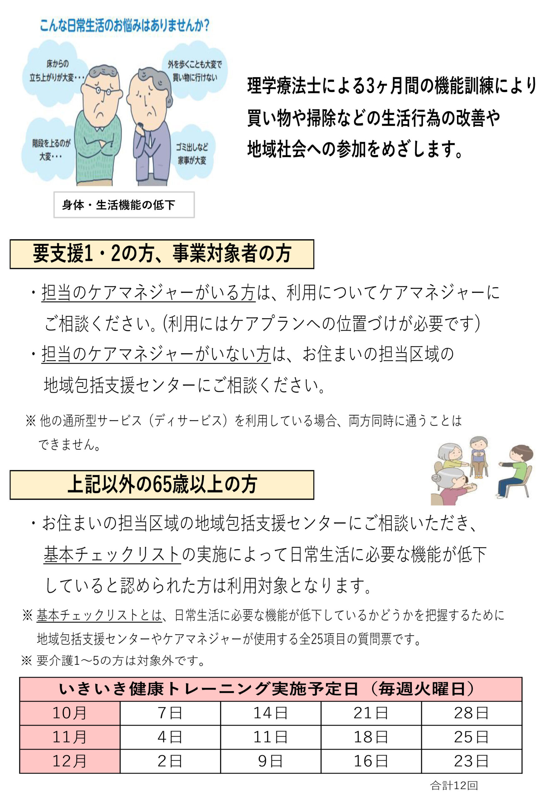 3ヶ月間の短期集中トレーニング(10月~12月):2025年09月04日(木)